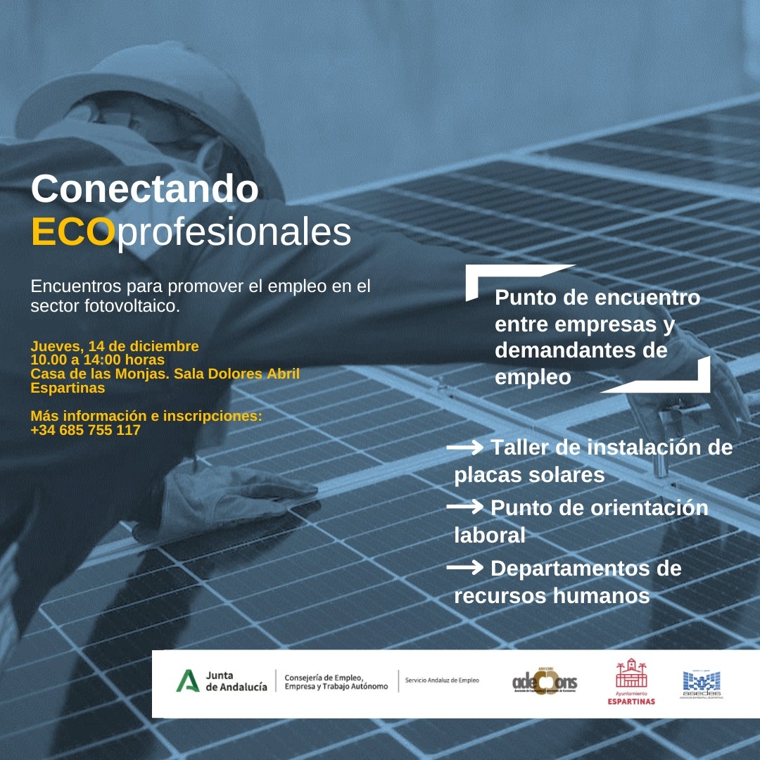 Con el objetivo de promover el empleo en el sector fotovoltaico, se podrá atender a talleres de instalación de placas solares, además de un punto de orientación laboral y departamento de recursos humanos.