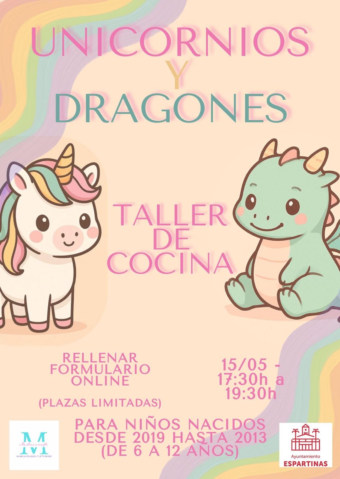 En su primer taller, Unicornios y Dragones, aprenderán a hacer galletas. Las plazas son limitadas por orden de inscripción. ¡Corre que vuelan!