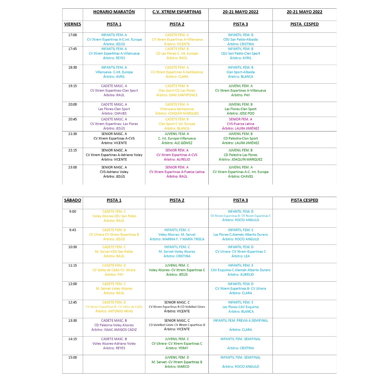 Este fin de semana 20 y 21 de mayo tendrá lugar el VIII Maratón de Voleibol, dentro de las actividades organizadas por la Escuela Deportiva Municipal de Voleibol que dirige el Club Xtrem de Espartinas, con la colaboración del Ayuntamiento.