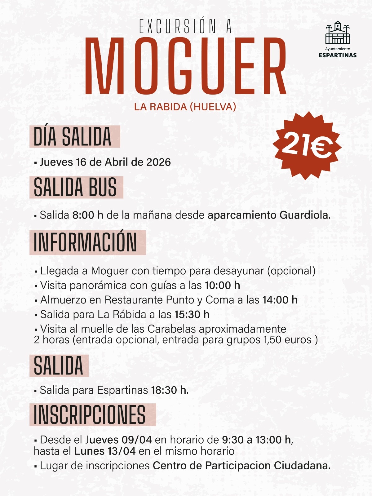 ¡Nos vamos de excursión a Moguer el 16 de abril!