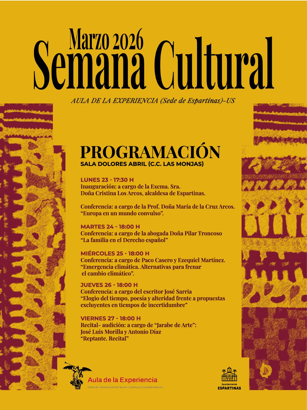 SEMANA CULTURAL 2026. CONFERENCIA "ELOGIO DEL TIEMPO, POESÍA Y ALTERIDAD FRENTE A PROPUESTAS EXCLUYENTES EN TIEMPOS DE INCERTIDUMBRE"