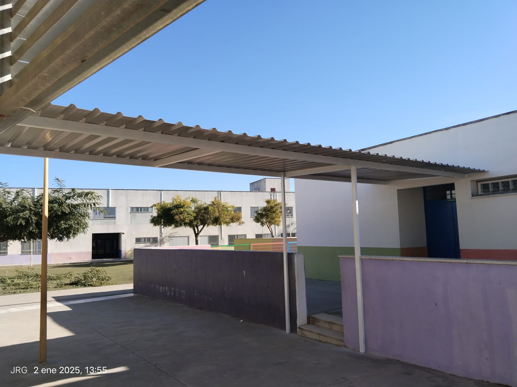 - Trabajos de herrería como el arreglo de tubos de la entrada principal, colocación de un techo que une el comedor con el gimnasio para los días de lluvia, colocación de una valla nueva de 50 metros. Colocación de cancelas para el control de los niños en el patio de infantil.