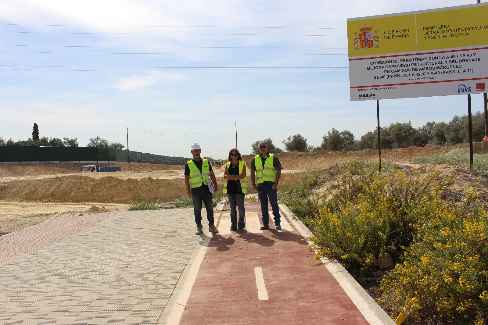 La alcaldesa, Cristina Los Arcos, y el concejal de Urbanismo, Juan Luis Núñez, junto a la dirección de obra del Ministerio de Transportes, Movilidad y Agenda Urbana y el jefe de obra de la empresa MBA, han realizado una visita técnica a las obras de conexión de Espartinas a la SE40/A49 a través de la Finca El Escribano.