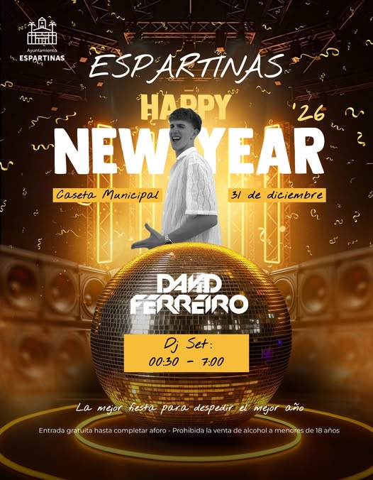 La Caseta Municipal de Espartinas acoge la primera fiesta del 2026 con el DJ David Ferreiro.