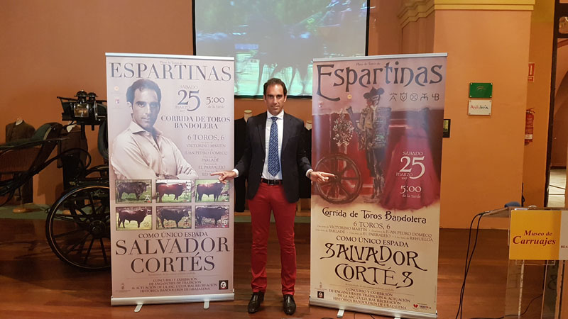 El próximo 25 de marzo, la Plaza de Toros de Espartinas acogerá por primera vez una encerrona con 6 toros con Salvador Cortés como protagonista. El diestro sevillano matará seis toros en solitario de diversas ganaderías. Los toros escogidos para tan señalada fecha serán de: Victorino Martín, Juan Pedro Domecq, Parralejo, Rehuelga y Parladé. La corrida ha sido denominada como la ‘Gran Corrida Bandolera’, una idea que según ha comentado el propio torero: “surgió de conversaciones con amigos míos donde buscábamos hacer cosas diferentes que atrajeran al aficionado y convirtieran el espectáculo en algo atractivo”.