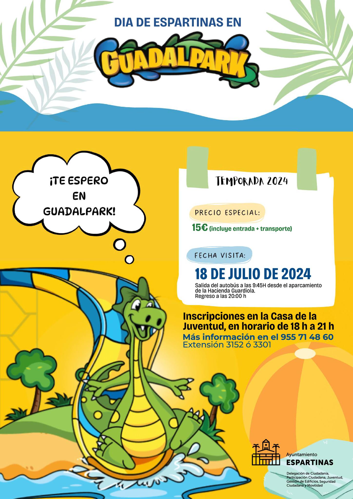 Dentro de la programación de actividades de la Operación Sombrilla, la delegación de Juventud del Ayuntamiento de Espartinas ha organizado una excursión al parque acuático de Sevilla, Guadalpark.