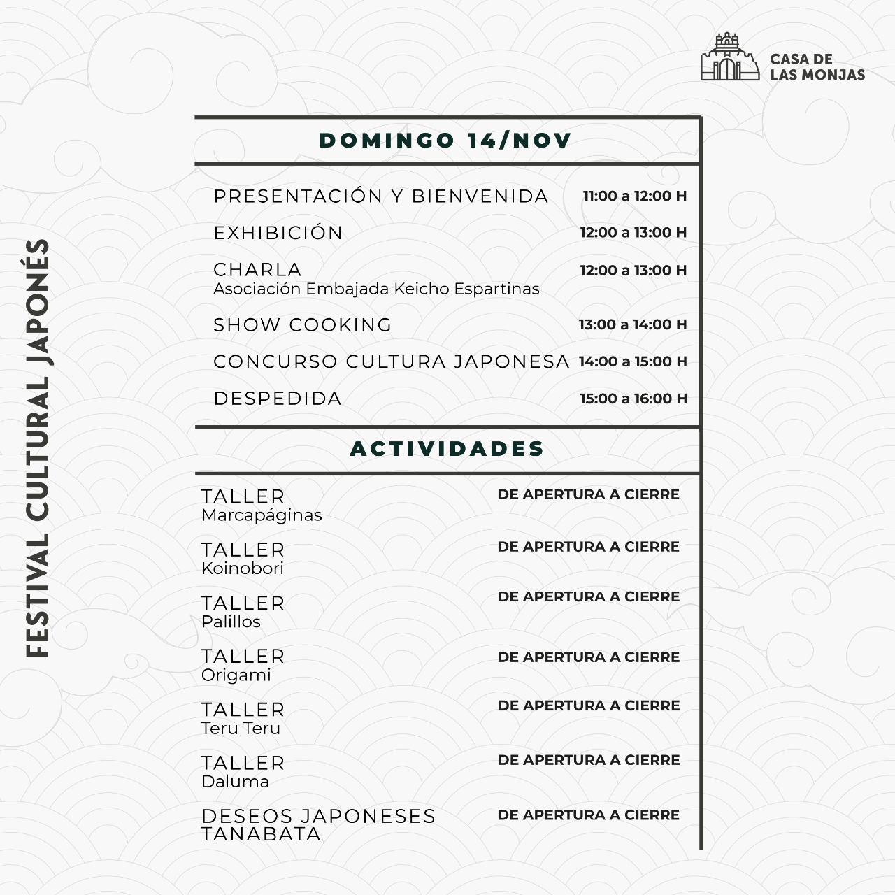 Ven y disfruta de un sinfín de actividades relacionadas con la cultura japonesa. Te esperamos en el Centro Cultural Casa de las Monjas