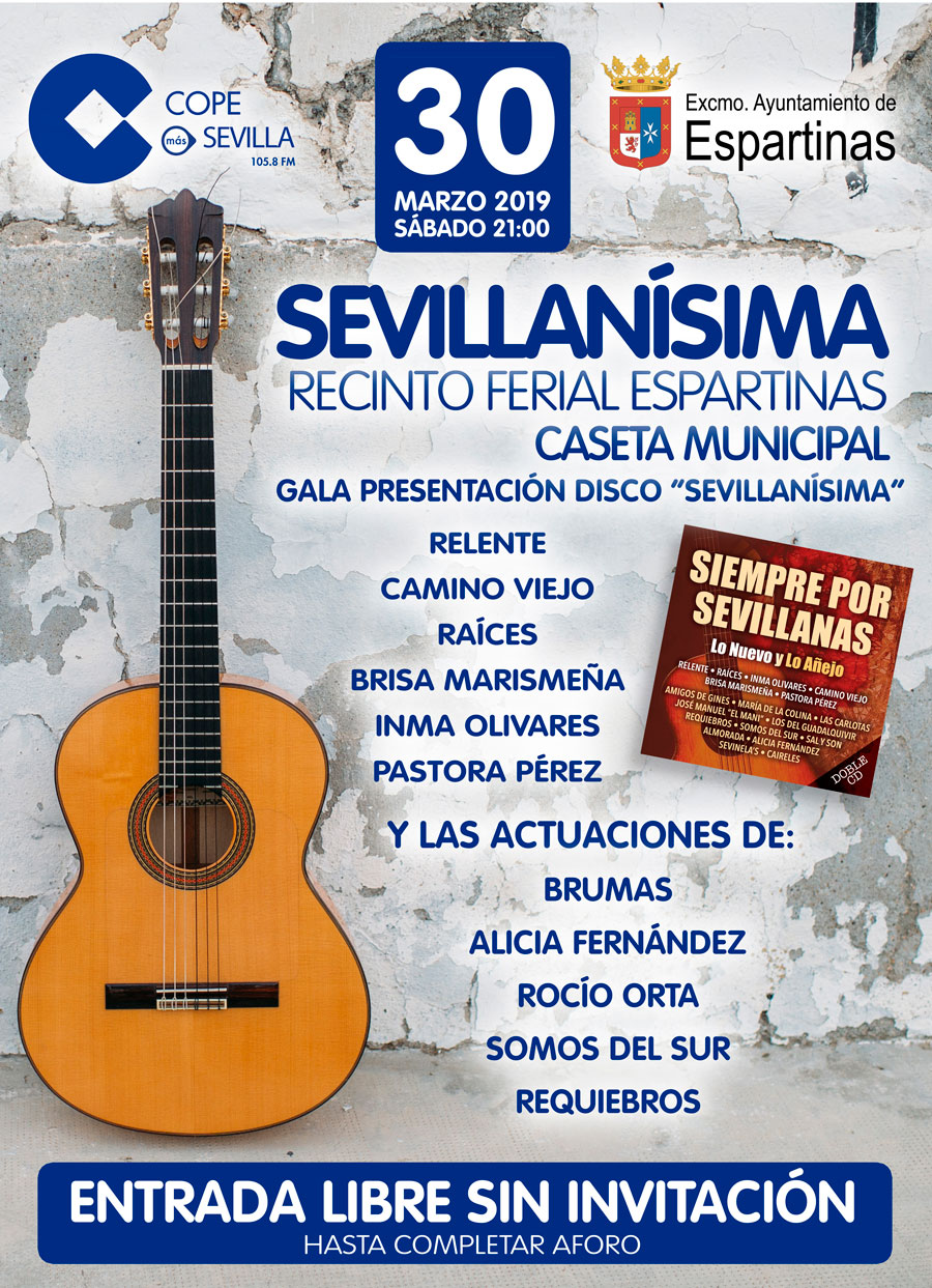 El próximo 30 de marzo tendrá lugaren Espartinas la Gala Presentación del Disco "Sevillanísima" con los siguientes grupos