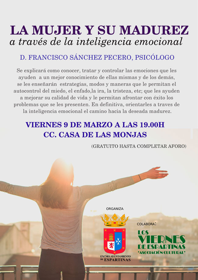 La charla versará sobre el fascinante mundo de de la inteligencia emocional. Se les explicará como conocer, tratar y controlar las emociones que les ayuden a un mejor conocimiento de ellas mismas y de los demás, se les enseñará estrategias, modos y maneras que le permitan el autocontrol del miedo, el enfado,la ira, la tristeza, etc que les ayuden a mejorar su calidad de vida y le permitan afrontar con éxito los problemas que se les presenten. En definitiva orientarles a traves de la inteligencia emocional el camino hacia la deseada madurez.