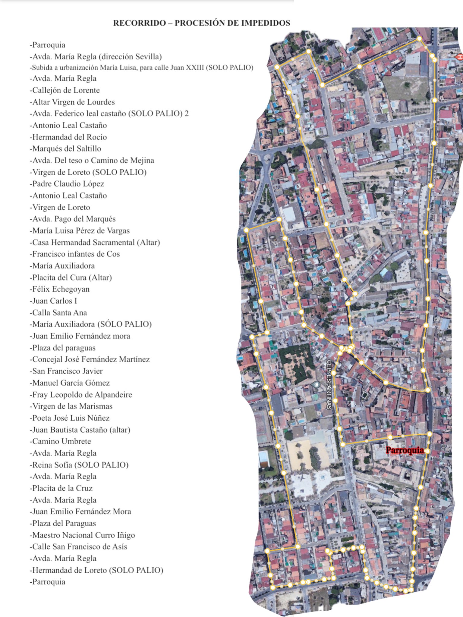 El domingo 12 de mayo, a partir de las 09:00 horas de la mañana, tendrá lugar la tradicional Procesión de Impedidos por las calles de Espartinas. Os informamos sobre el recorrido que seguirá la procesión.