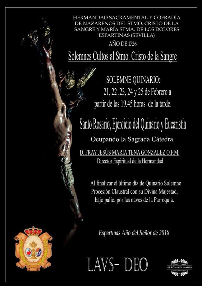 El miércoles 21 de febrero, a las 19.45 horas, comienza el Quinario al Santísimo Cristo de la Sangre, en la Parroquia de Nuestra Señora de la Asunción. Ya huele a Semana Santa en #Espartinas con su Hermandad Sacramental Espartinas. Tras el mismo, en el museo de la Casa Hermandad (avenida María Luisa Domínguez y Pérez de Vargas), tendrá lugar la Presentación del Libro “El arte en las manos” del vestidor José Antonio Grande de León.