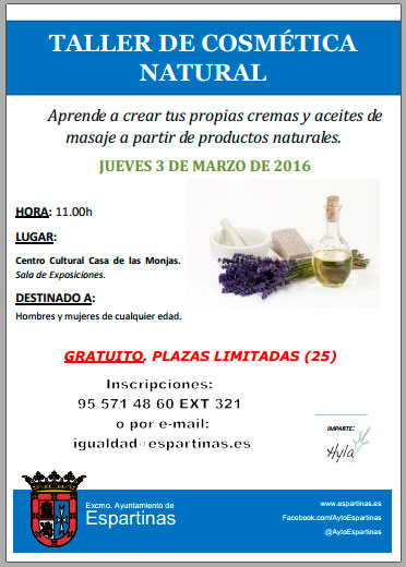 3 DE MARZO: TALLER DE COSMÉTICA NATURAL. GRATUITO