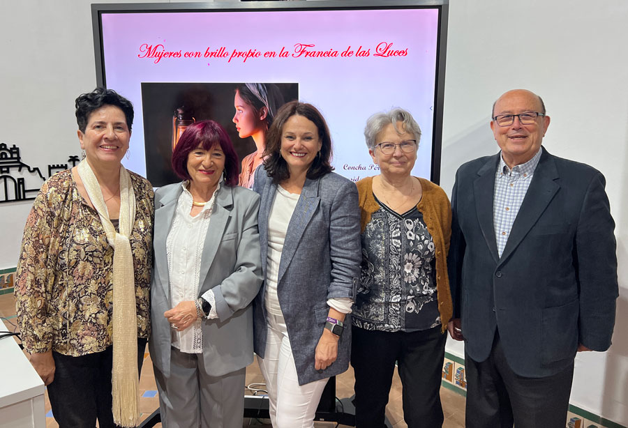 Ayer comenzó la Semana cultural del Aula de la Experiencia con sede en Espartinas con la conferencia “Mujeres con brillo propio en la Francia de las luces”, a cargo de la profesora María Concepción Pérez. La inauguración de esta semana cultural corrió a cargo de la alcaldesa, Cristina Los Arcos, que estuvo acompañada del catedrático en Matemáticas y Rector Honorífico de la Universidad de Sevilla, Miguel Florencio Lora. También estuvieron presentes la concejala de Educación, Maite Conde, y la coordinadora del Aula, Carmen Correa, así como numeroso público que disfrutó de la charla.