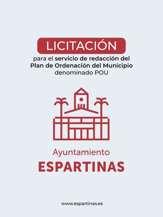 El Ayuntamiento de Espartinas ha publicado la licitación para el servicio de redacción del Plan de Ordenación del municipio denominado POU, un instrumento necesario para establecer el desarrollo urbanístico del municipio una vez se establezcan la clasificación de los suelos en el Plan General de Ordenación Urbana Municipal (PGOM), distinguiéndose entre urbano y rústico.