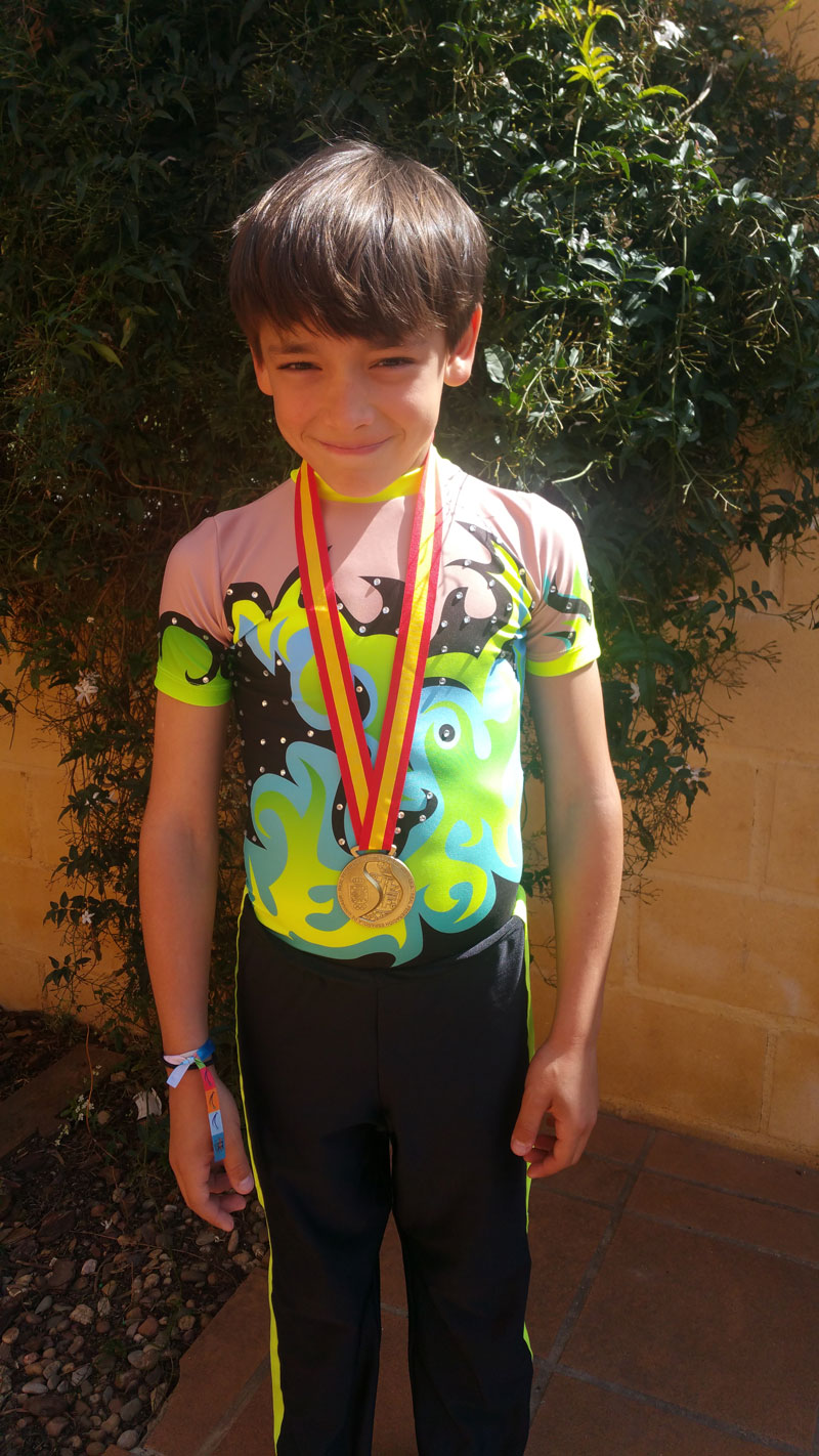 Marco Martín, espartinero de 9 años, ha conseguido recientemente la medalla de oro en el Campeonato de España de Ginmasia Acrobática, celebrado recientemente en Xirivella (Valencia). Marco pertenece a un equipo de la capital Hispalense llamado Club Deportivo PYRAMIDOS, creado en septiembre de 2015. Entrena 15 horas semanales 5 días a la semana.Ha participado junto a su compañero de equipo Gonzalo (14 años) en los siguientes torneos en categoría cadete pareja masculina: