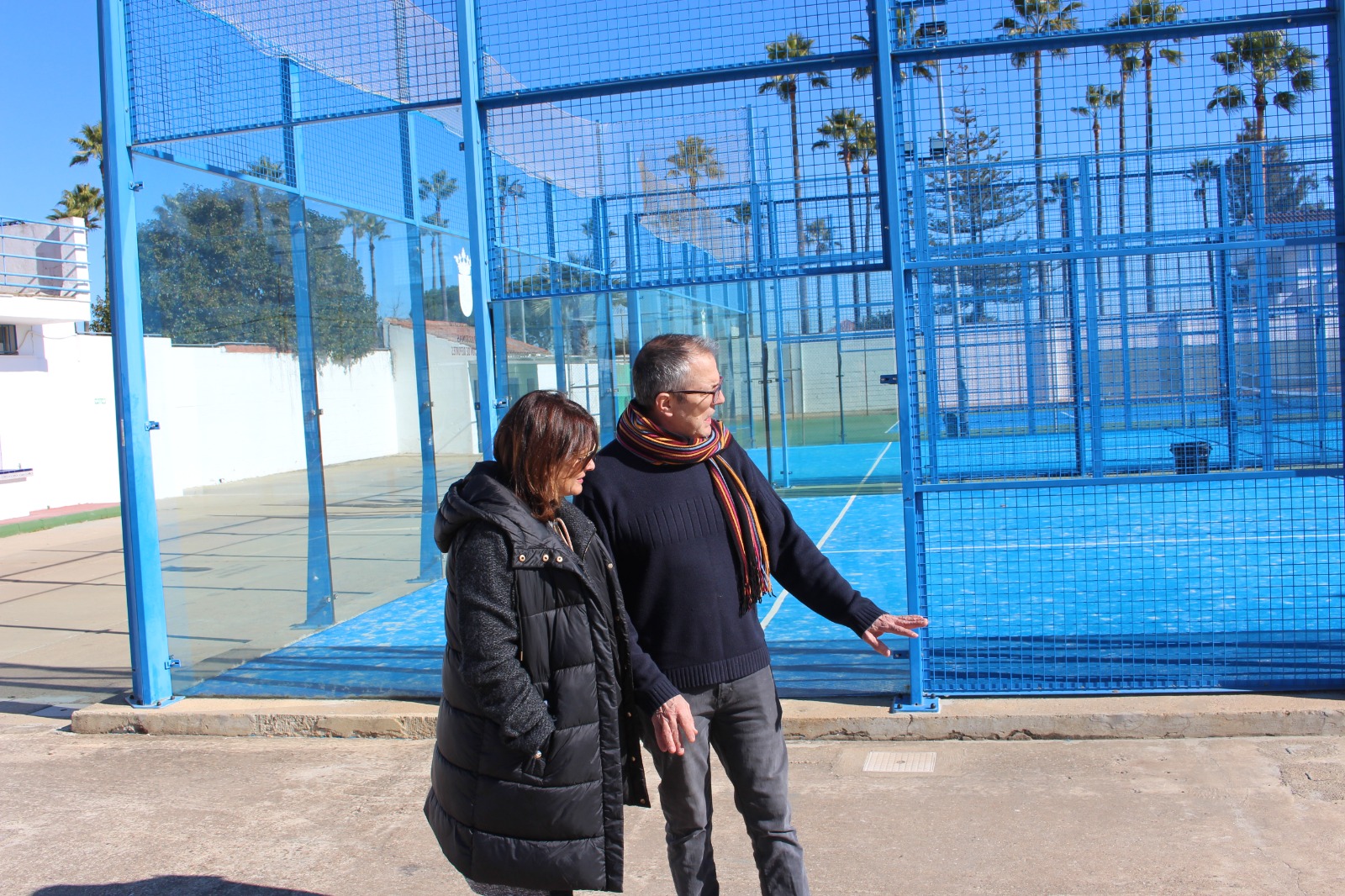 La alcaldesa, Cristina Los Arcos, y el concejal de Deportes, Fernando Iturralde, han visitado las obras de mejora realizadas en el Polideportivo Municipal, situado en la avenida María Luisa Domínguez y Pérez de Vargas.