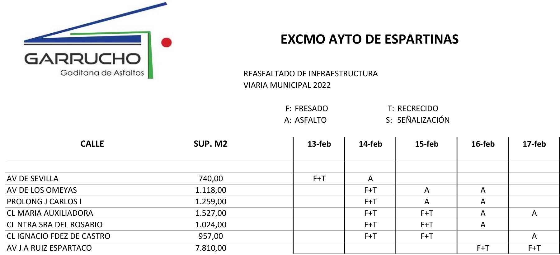 PLAN REASFALTADO VIARIO MUNICIPAL SEMANA 13-19 DE FEBRERO