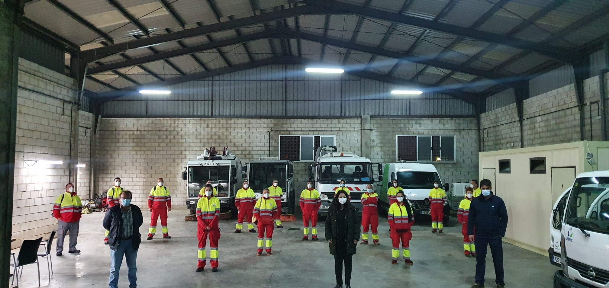 Esta mañana, la alcaldesa de Espartinas, Cristina Los Arcos, y el concejal de Medio Ambiente, Manuel González, han visitado la nave donde Urbaser ha situado su centro logístico en Espartinas.
