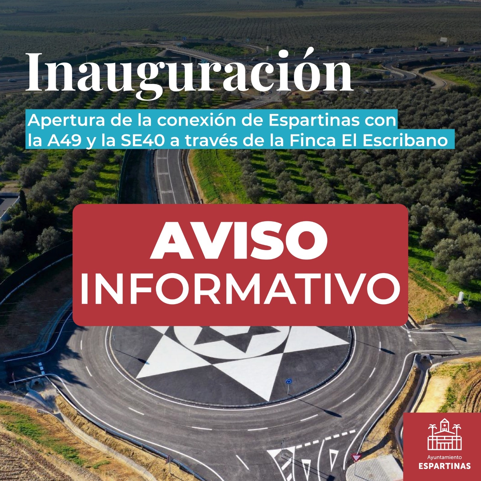ESPARTINAS INAUGURARÁ EL PRÓXIMO LUNES SU CONEXIÓN A LA A49/SE40 A TRAVÉS DE LA FINCA EL ESCRIBANO
