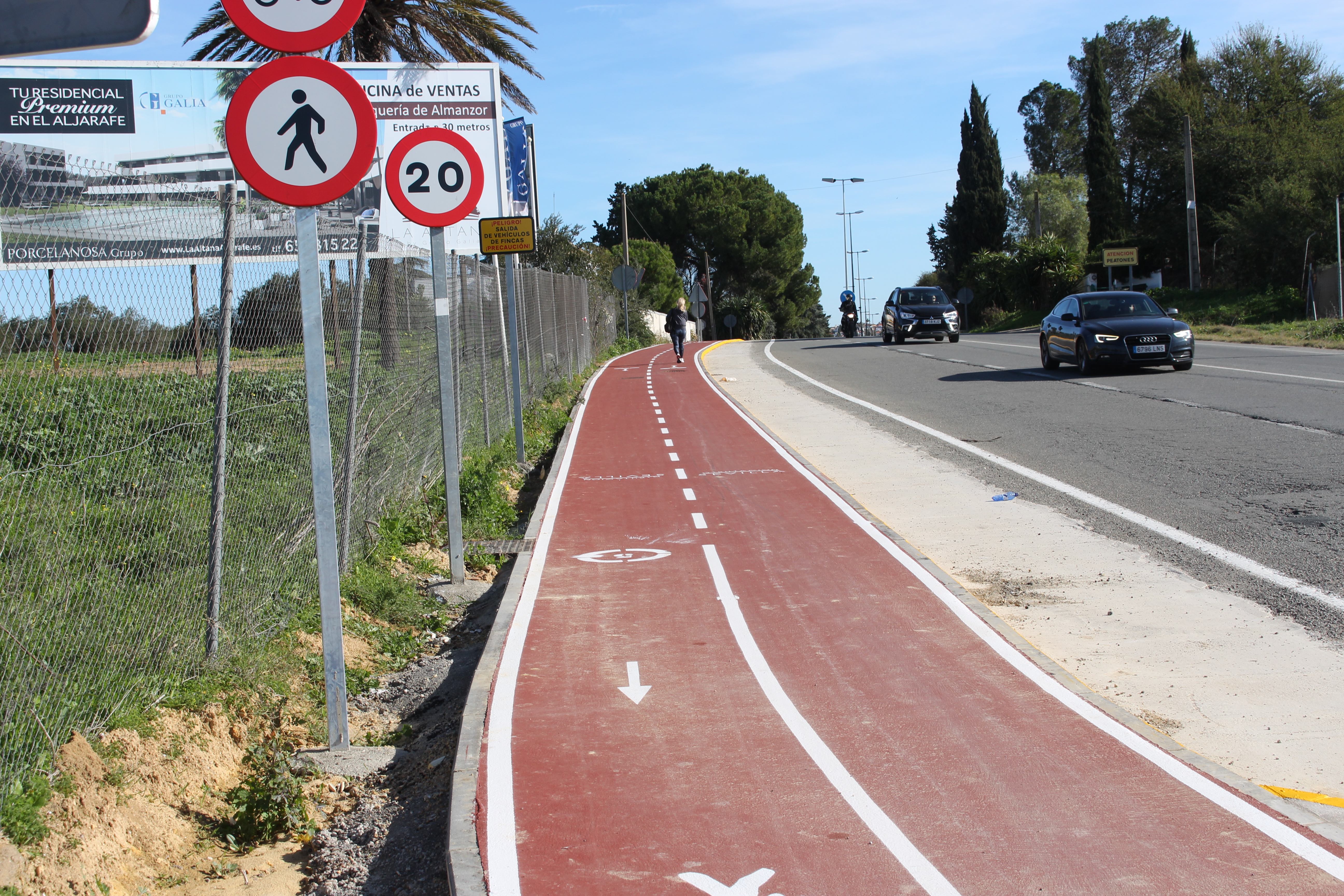 El carril que une Espartinas con Gines, tiene una longitud de 630 metros, con un ancho de 2.5 metros