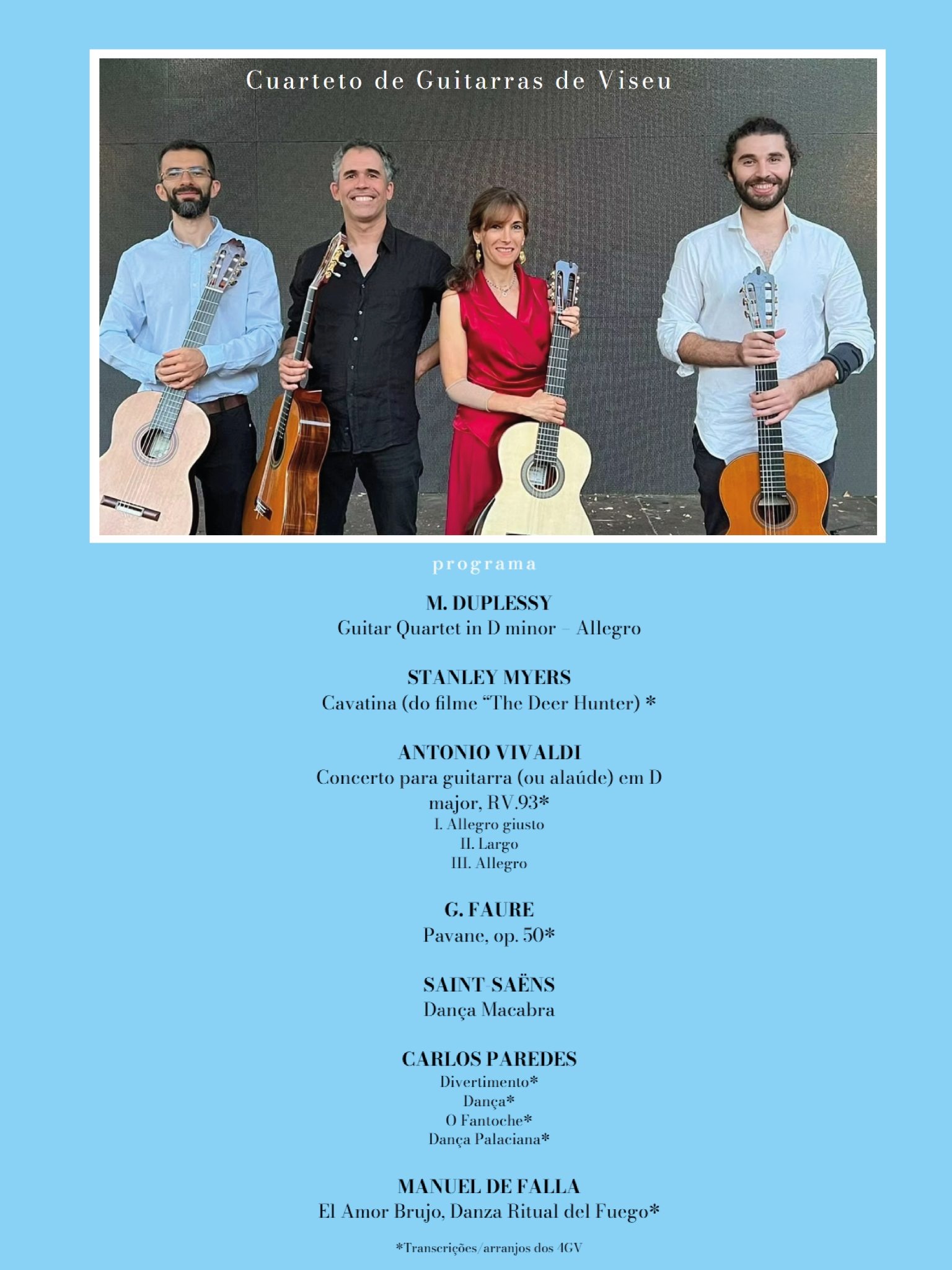La Hacienda El Vizir acogerá el 17 de octubre a las 19:30 h este Festival, con el Cuarteto de Guitarras de Viseu que estará haciéndonos disfrutar de su repertorio. Entrada gratuita hasta completar aforo.