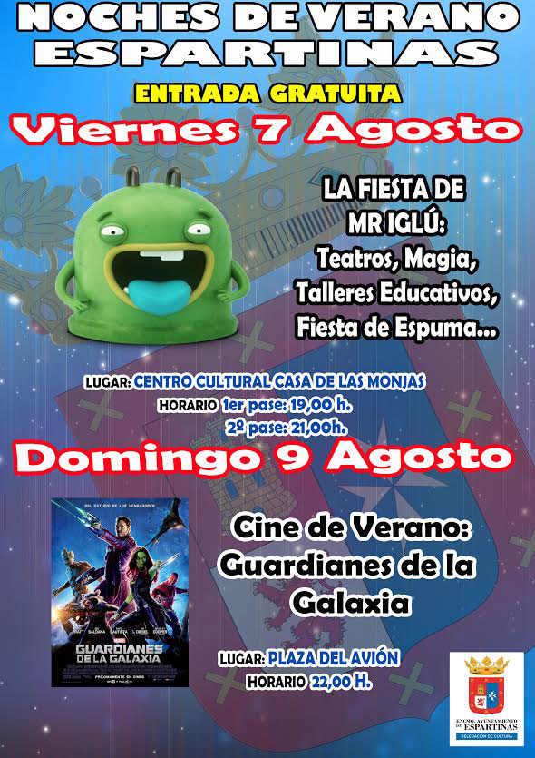 CINE DE VERANO: GUARDIANES DE LA GALAXIA , en la Plaza del Avión, a las 22.00 horas. Entrada gratuita