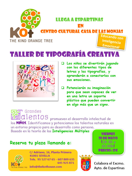TALLER DE TIPOGRAFÍA CREATIVA, VIERNES 20 DE MAYO (18.30 A 20.00 HORAS)