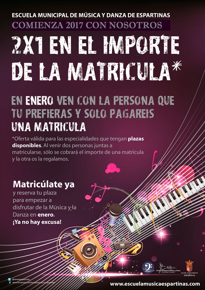 OFERTA EN MATRÍCULAS PARA LA ESCUELA MUNICIPAL DE MÚSICA Y DANZA