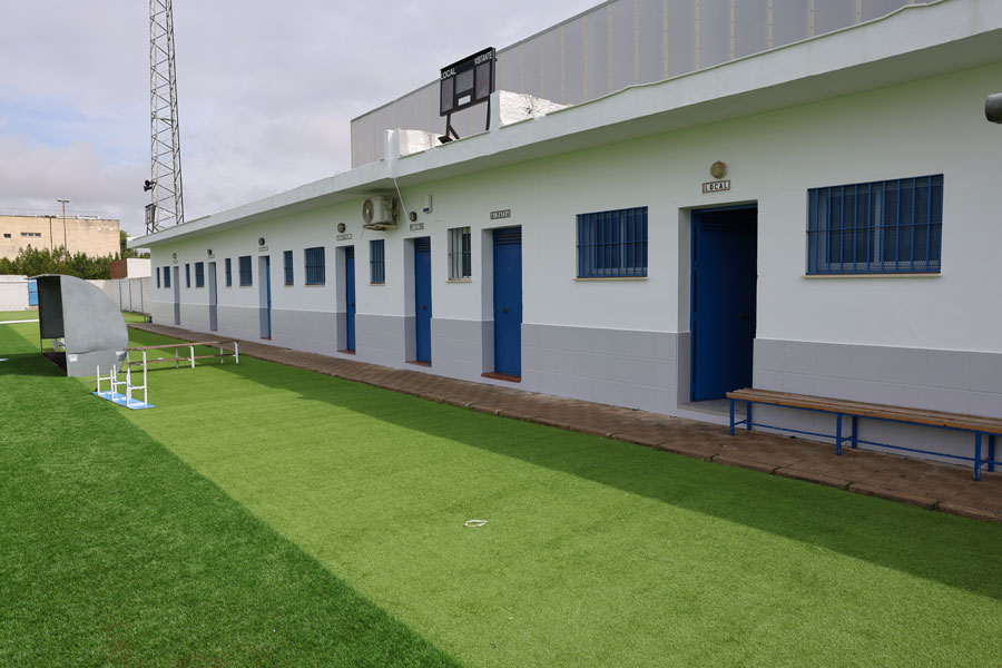 Los nuevos vestuarios cuentan con 4 duchas independientes separadas por paneles fenólicos. Además están dotados con solería antibacteriana y un revestimiento con azulejos en el interior, incluso en la zona donde se cambian los jugadores. También cuentan con dos lavabos con espejos y un inodoro. Por último, se ha actuado en la parte exterior de los vestuarios.