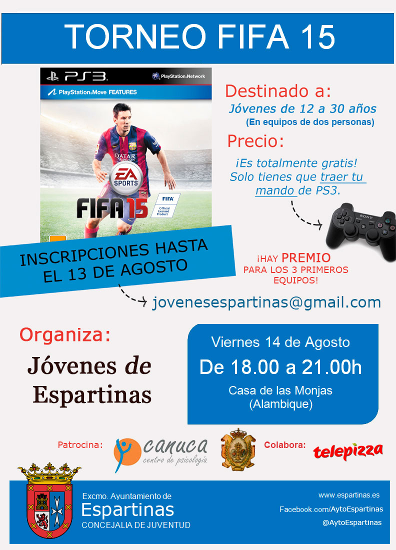 I TORNEO FIFA 15 ESPARTINAS: 14 DE AGOSTO. GRATIS