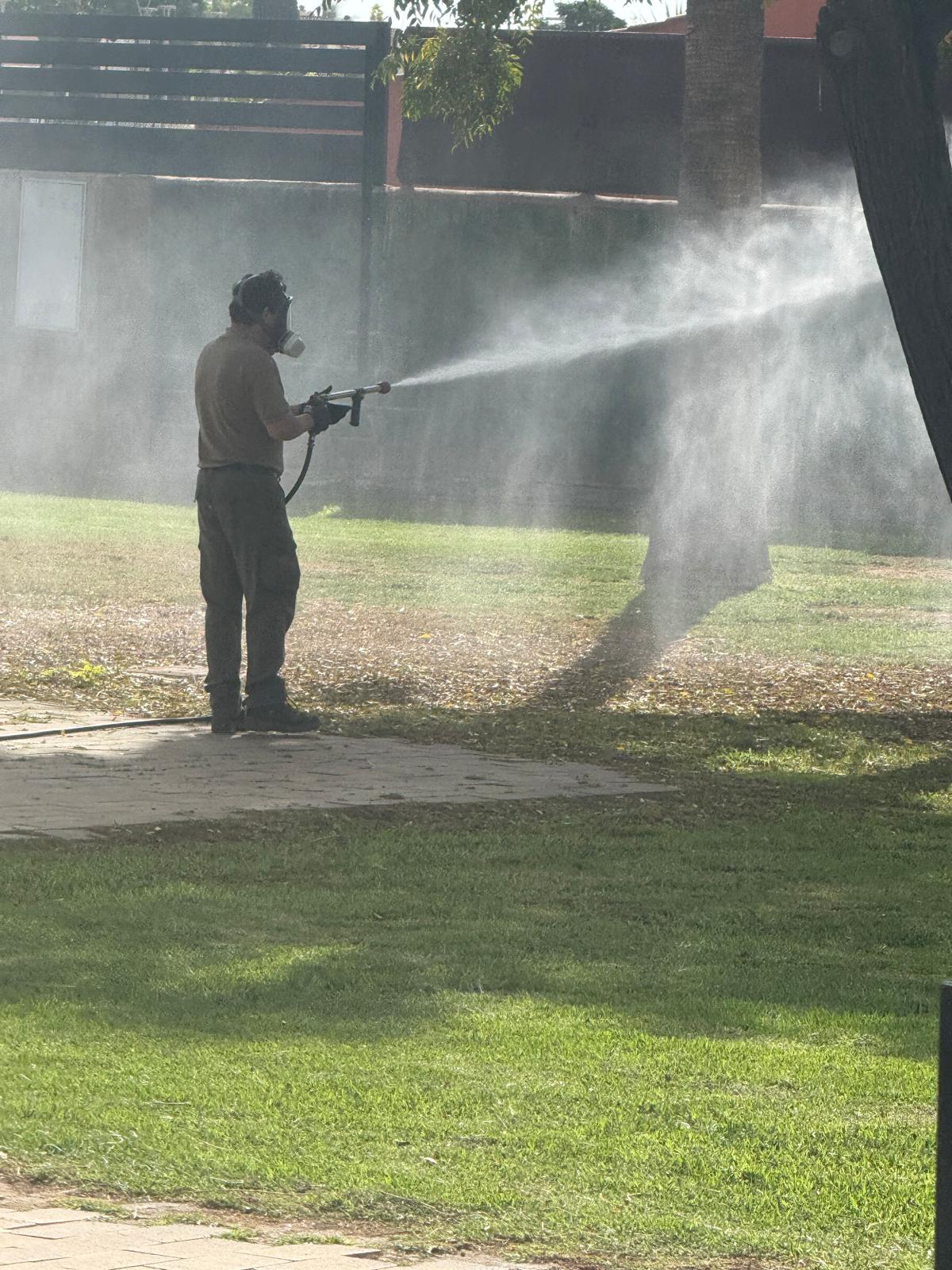 Esta mañana se ha llevado a cabo la aplicación de tratamientos preventivos contra insectos, concretamente araña roja, en el Parque del Sol, tal y como se informó ayer. Para estos trabajos se ha cerrado el Parque del Sol. Está previsto que mañana jueves 23 de octubre se abra de nuevo al público, una vez pasado el periodo de cuarentena necesario.