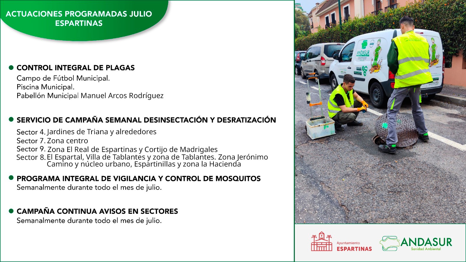 INFORME DE LOS TRABAJOS DE DESINSECTACIÓN Y DESRATIZACIÓN EN ESPARTINAS DURANTE LOS MESES DE MAYO Y JUNIO
