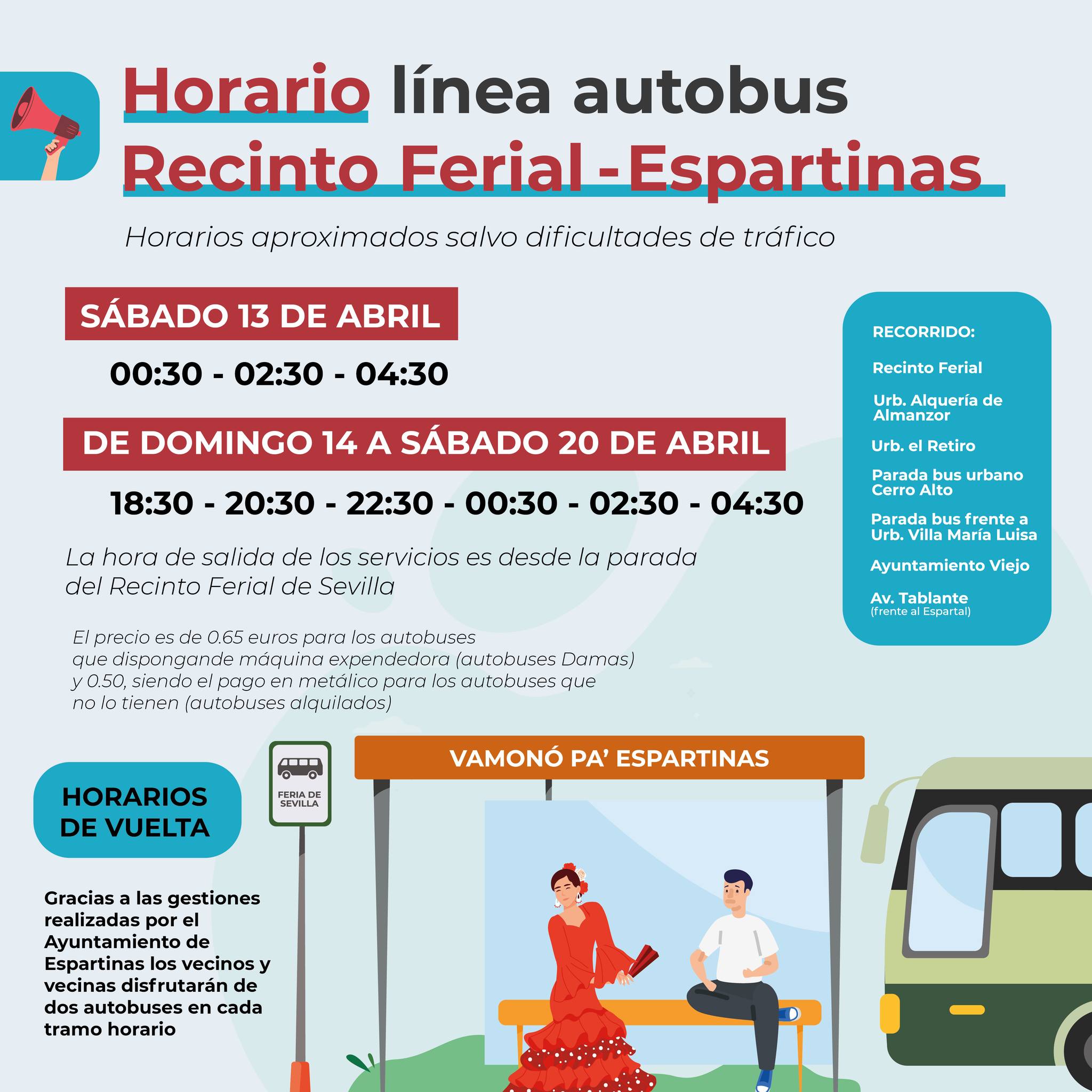 Información sobre horarios y puntos de salida del autobús de la Feria de Sevilla 2024