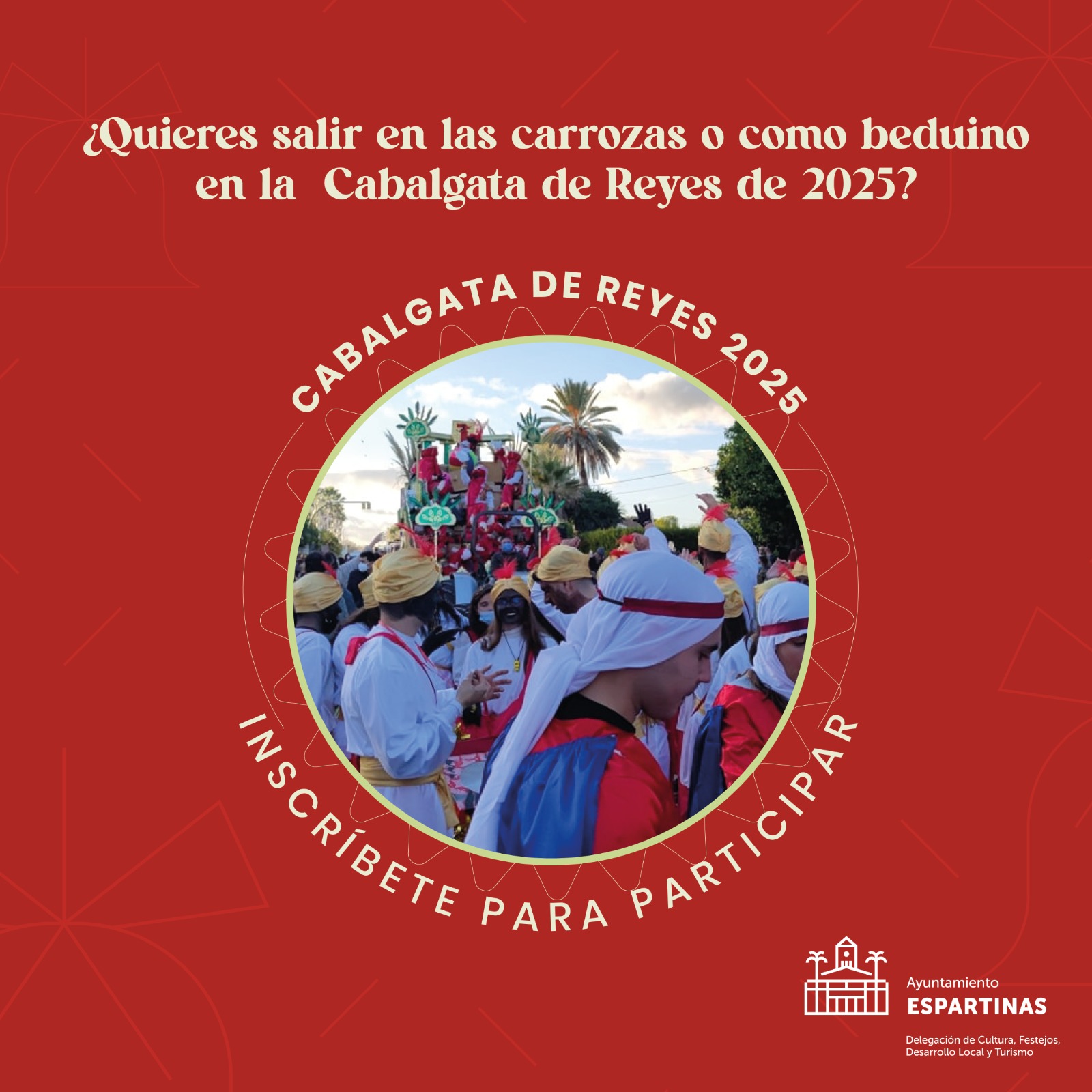 Abierto el plazo de inscripción para salir en la Cabalgata de los Reyes Magos de Espartinas. Puedes salir en las carrozas o como beduino.